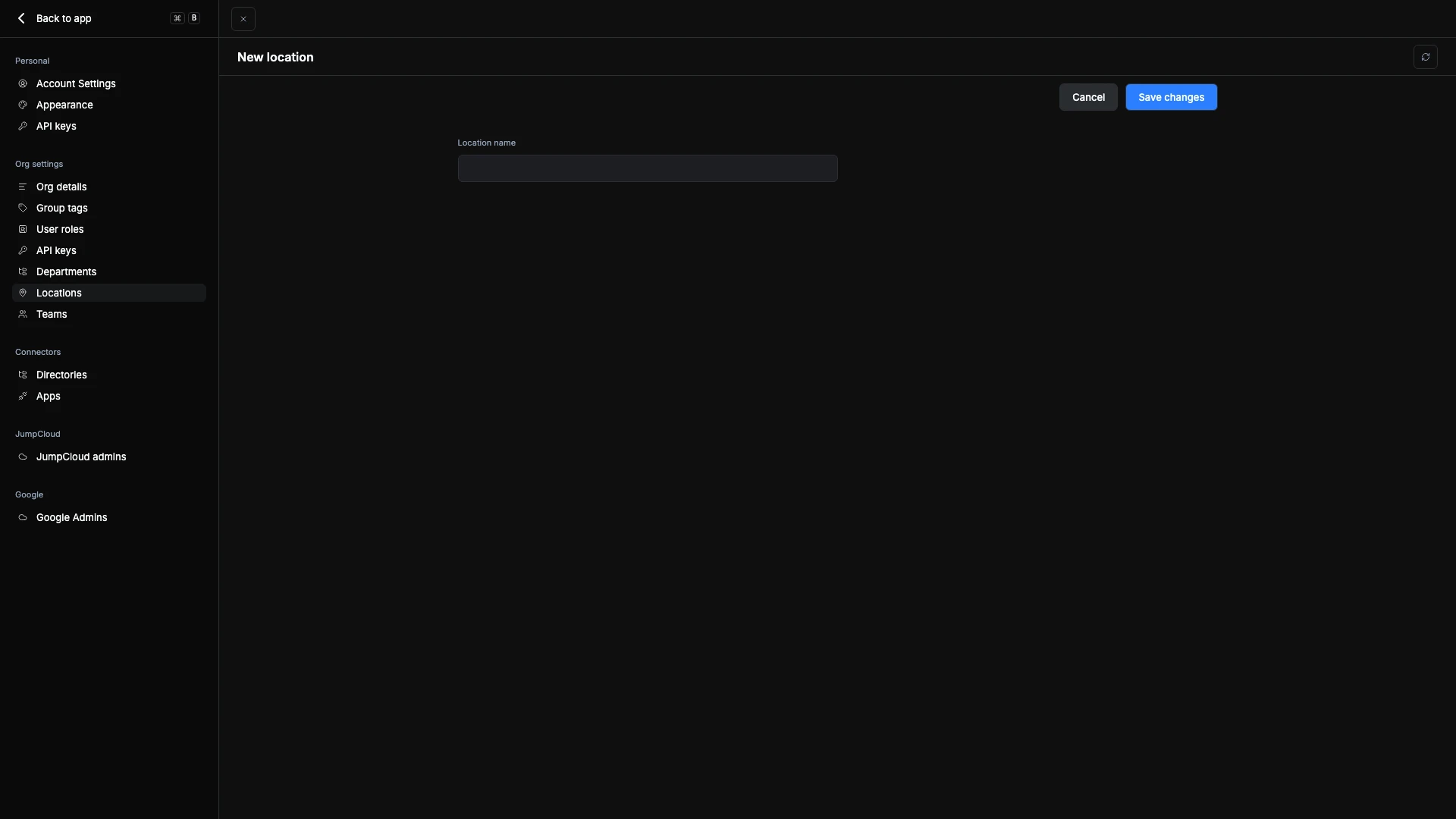 The Locations page under Org Settings allows administrators to define and manage the list of organizational locations such as offices, regions, or countries. Locations can be automatically synced from your HRIS integration or added manually. They are used throughout ShiftControl to associate users, apps, and groups with specific physical or operational sites.