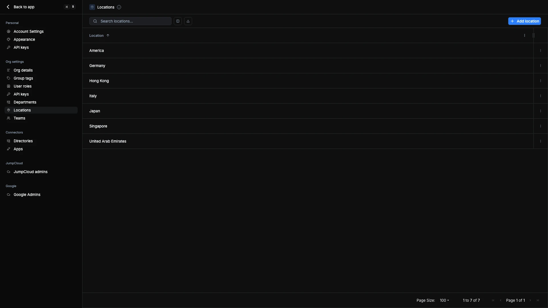 You can also edit existing locations using the ⋮ menu next to each entry. When renamed, any linked users or dynamic groups remain associated automatically.