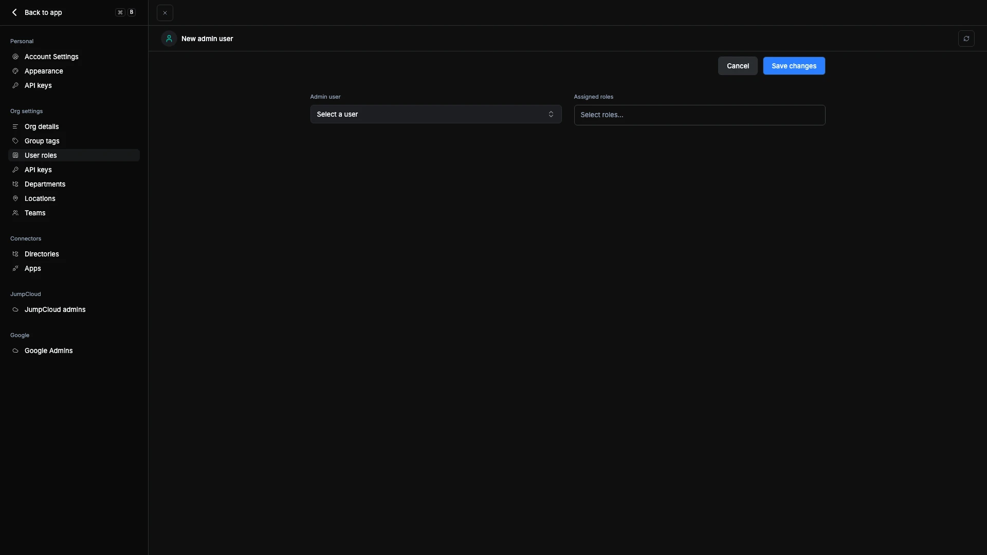 - Under Assigned Roles, choose one or more roles from the dropdown.